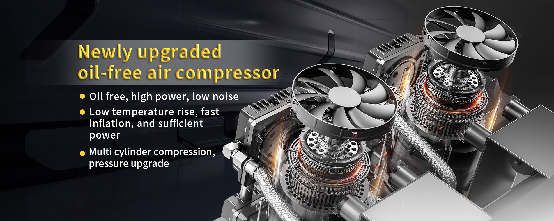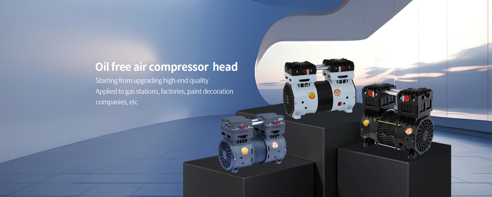Two compression cylinders and motors share the same shaft, eliminating reactive power loss and ensuring sufficient power efficiency< No coupling, belt, gear or other connecting components, no need for oil for daily maintenance, zero maintenance cost.